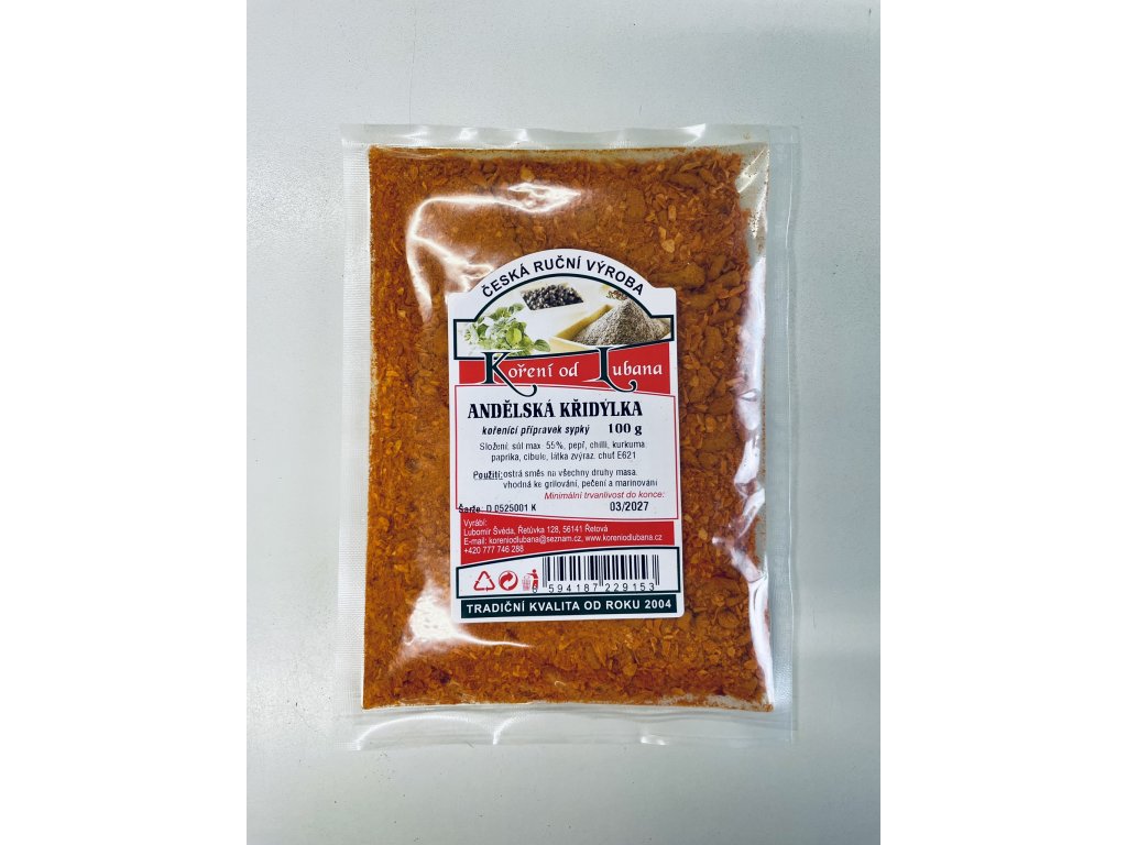 Složení: pepř, chilli, kurkuma, paprika, cibule, sůl max. do 55%.