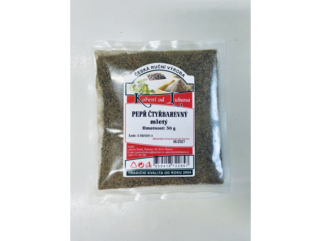 Složení: směs celých pepřů (bílý, černý, červený a zelený)