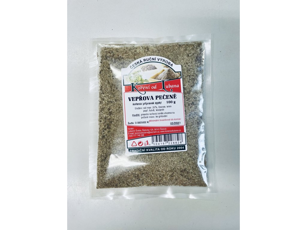 Složení: česnek, kmín, pepř, koriandr, šalvěj, sůl max. do 26%.